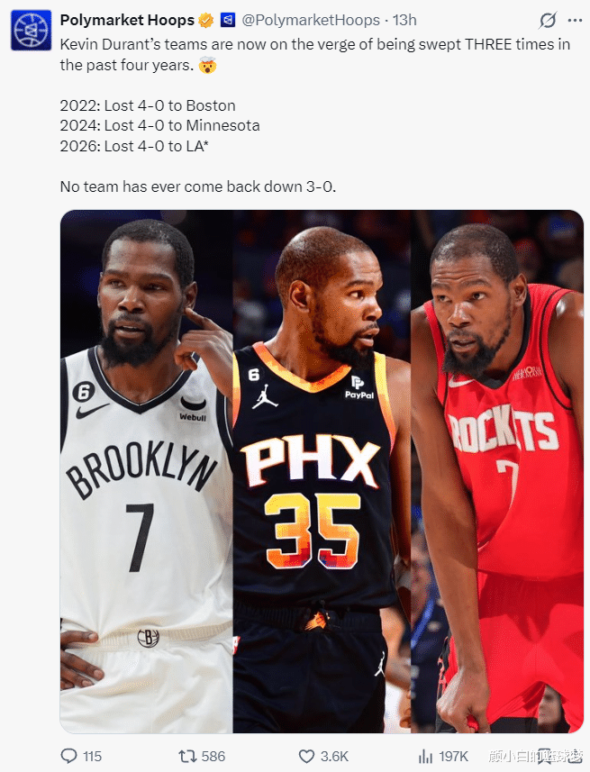 好意思媒晒出杜兰特往常四年季后赛首轮,2022年首轮被绿凯横扫,开云app2024年首轮被丛林狼横扫,2026年首轮0-3过期湖东谈主,臆想他大约率要第三次被横扫了。(2023年太阳首轮4-1淘汰快船,次轮2-4不敌掘金)